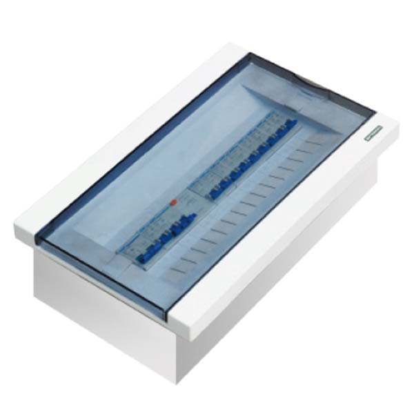 PZ30终端组合电器主要结构部件有透明罩、上盖、箱体、安装轨、轨道高低调节螺杆、导电排、护线罩和电器开关元件等。 内装电器开关元件全部采用宽度9MM模数的电器,安装于顶帽形轨道上,可根据需要任意组合,安装轨道高低可调节,特别对暗装式 更为方便。拆装迅速方便、开关元件手柄外露,带电及其它部分遮盖于上盖内部,打开门可方便地操作,使用安全可靠,箱体上下、左右及背后均设置进出线孔,便于接线。